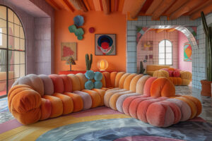 This concept is about creating environments that spark joy and positivity such as bright colors, playful objects, and whimsical designs. This approach transforms living spaces into sources of happiness and inspiration, serving as a form of self-care. It seems to be the offspring of a “dopamine menu,” which refers to a curated selection of items, experiences, or activities designed to evoke joy and stimulate happiness.